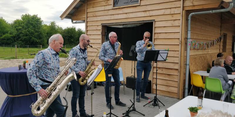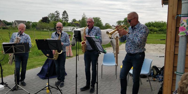 Op 20 mei 2023 mochten we spelen in Varik op Zorglandgoed Bloemfonteijn tijdens een verjaardag van drie personen. U ziet onze frisse 's zomerse outfit.